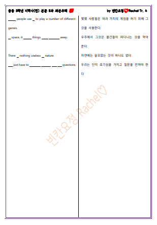 중3 지학사민 3과 본문 빈칸문제(중간버전) (0) | 2023.07.30 |