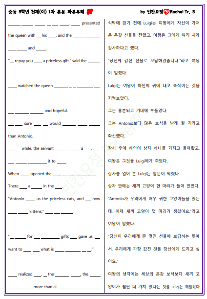 | 중3 천재이 1과 본문 빈칸문제(쉬운버전) (0) | 2024.02.02 |