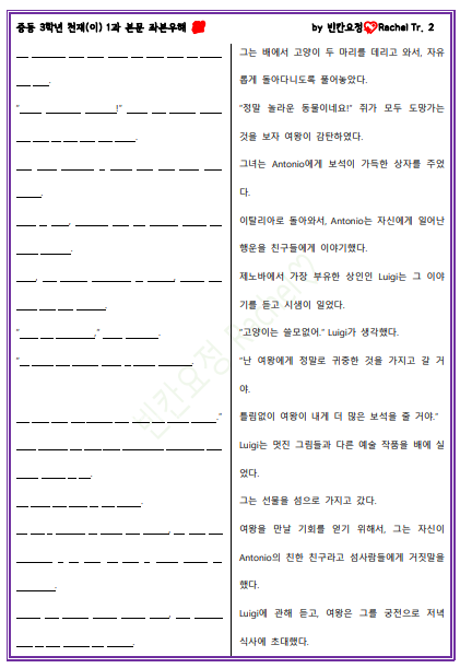 | 중3 천재이 1과 본문 빈칸문제(쉬운버전) (0) | 2024.02.02 |