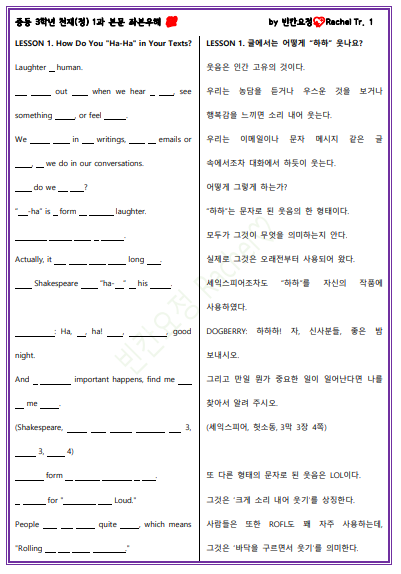 채점은 중3 천재정 1과 본문을 확인해주세요