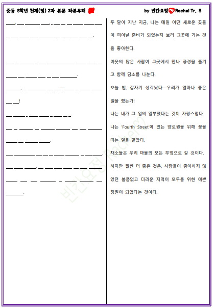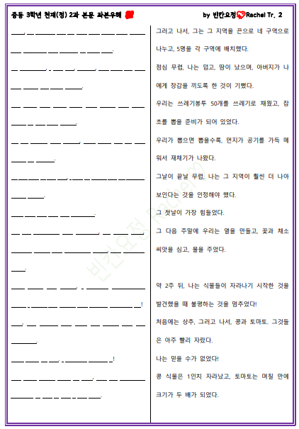 | 중3 천재정 2과 본문 빈칸문제(중간버전) (2) | 2024.01.19 |