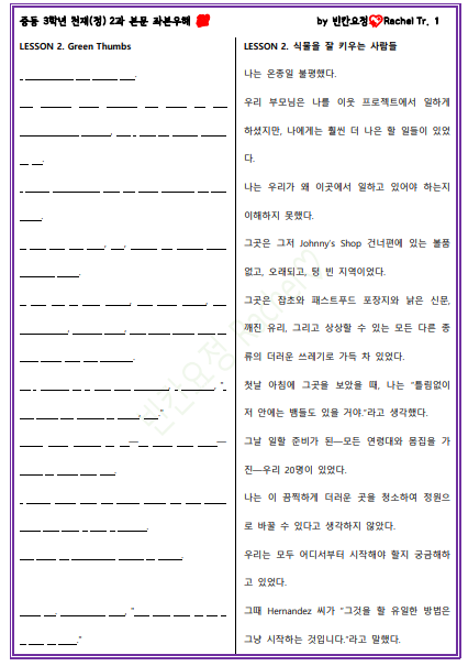 | 중3 천재정 2과 본문 빈칸문제(쉬운버전) (0) | 2024.01.19 |