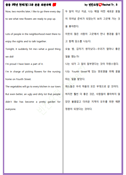 중3 천재정 1과 본문 해석쓰기 (0) | 2024.01.18 |