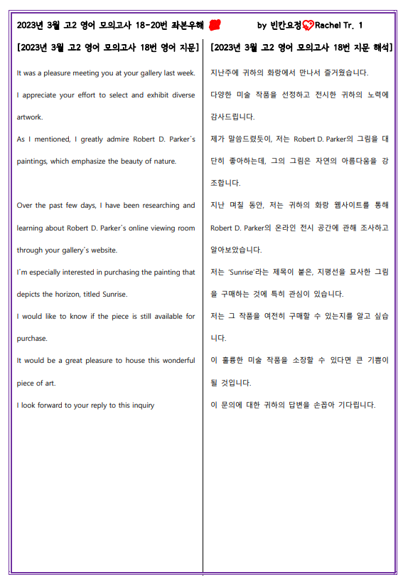 2023년 3월 고2 영어 모의고사 18-20번 해석쓰기 (0) | 2024.03.12 |
