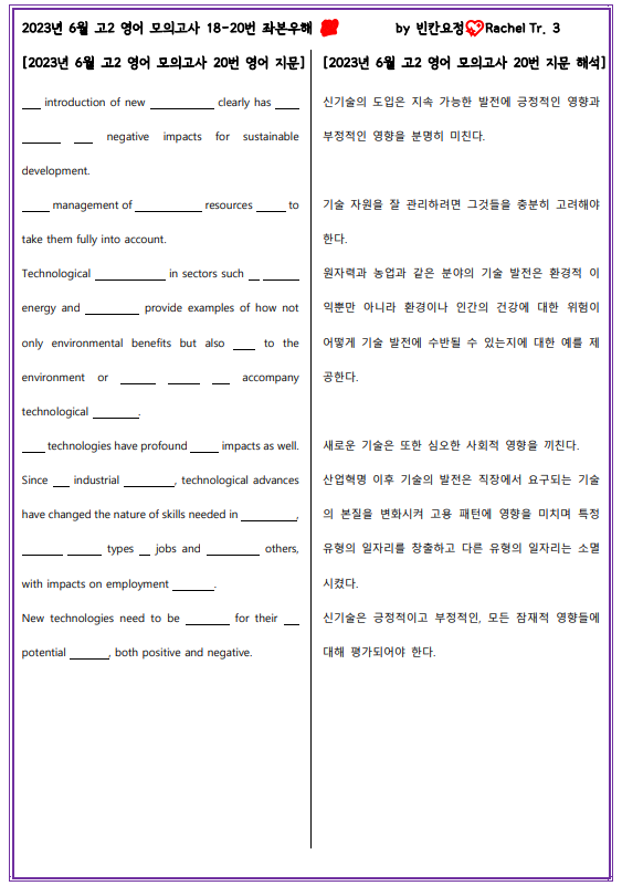 2023년 6월 고2 영어 모의고사 18-20번 좌본우해_빈칸요정(쉬운빈칸).pdf